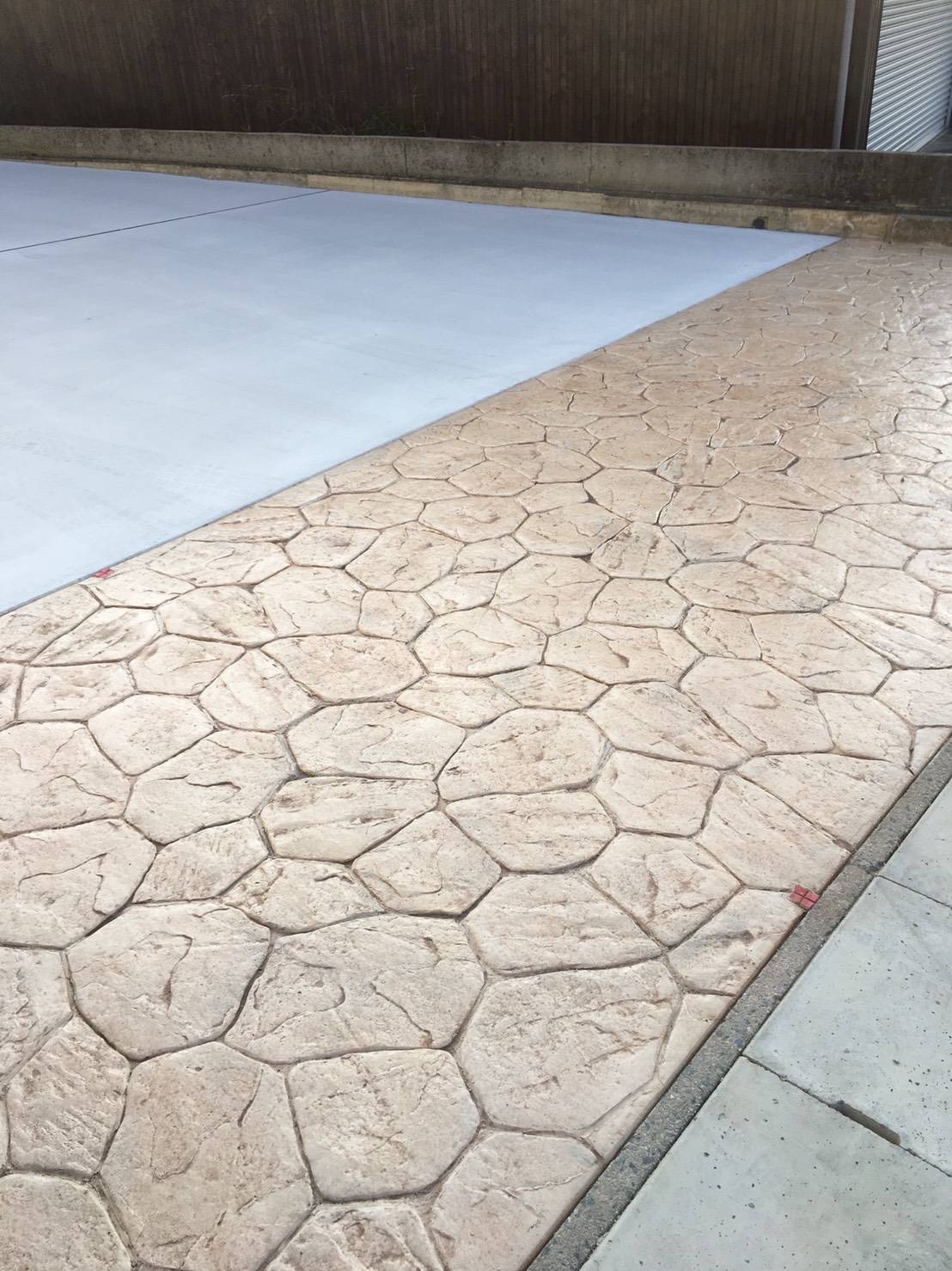 アプローチ、駐車場に施工を施す、スタンプコンクリートです。